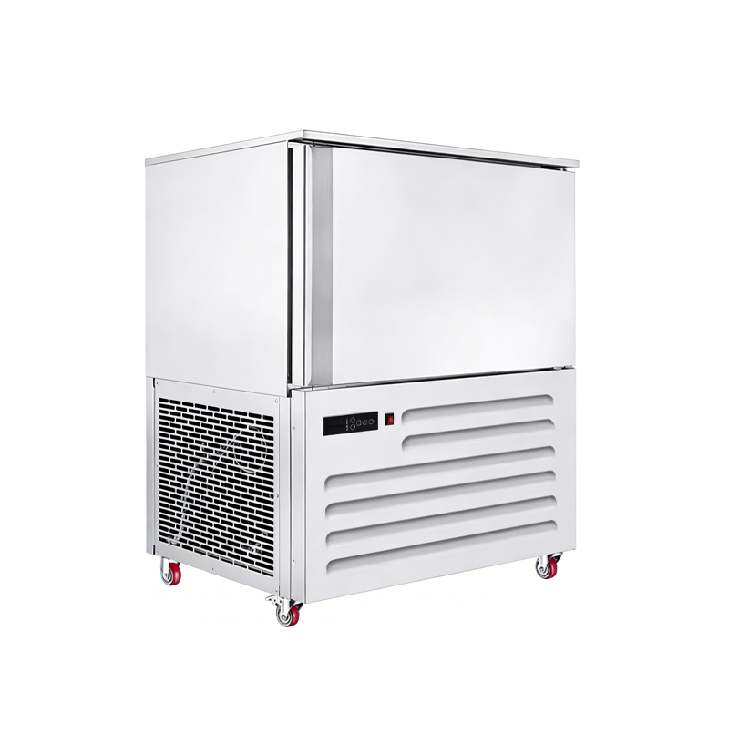 دستگاه تبرید حرفه ای با سرعت بالا و دمای پایین. عملکرد اصلی آن کاهش سریع دمای مرکزی غذا به زیر 45- درجه سانتیگراد (حتی 45- تا 80- درجه سانتیگراد) در مدت زمان بسیار کوتاه، عبور سریع از منطقه دمایی خطرناک برای تکثیر باکتری ها (65 تا 10 درجه سانتیگراد) و حفظ حداکثری رطوبت، مواد مغذی، طعم و شکل مواد اولیه است.این سری از فریزر های انفجاری تجهیزات انجماد با دمای پایین و راندمان بالا هستند که به طور گسترده در سناریوهای انجماد سریع و ذخیره سازی منجمد مواد غذایی کاربرد دارند. طیف محصولات ما شامل انواع مختلفی از جمله فریزر های انفجاری عمودی، فریزر های انفجاری چرخدار، فریزر های انفجاری با خنک کننده مستقیم و فریزر های انفجاری رومیزی می باشد. این دستگاه ها در سه درجه حرارتی عرضه می شوند: 0 تا 45- درجه سانتیگراد، 0 تا 60- درجه سانتیگراد و 0 تا 80- درجه سانتیگراد که می توانند نیازهای دقیق دمای پایین برنامه های مختلف را برآورده کنند.مدلدماروش خنک کننده